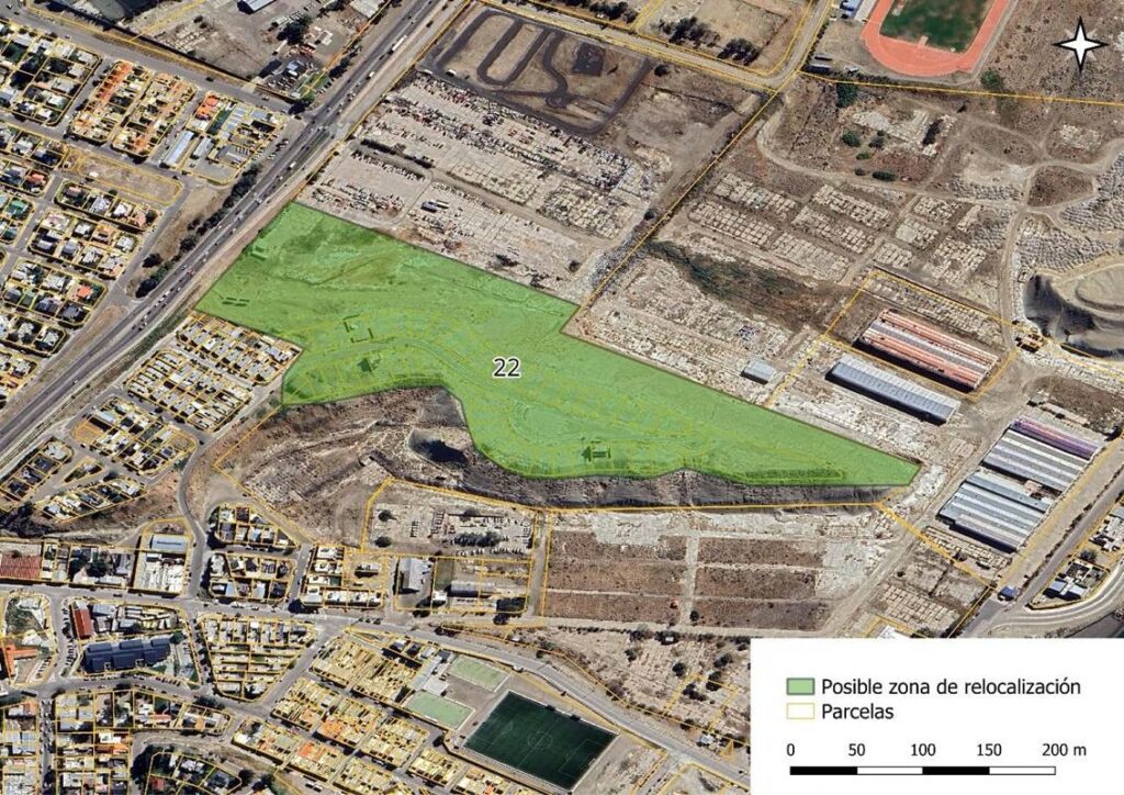 La elección del nuevo sitio debe responder al criterio de zona segura, planificado de acuerdo a los criterios geológicos y urbanos de la zona, para lograr condiciones de hábitat perdurables y sostenibles. Tendencialmente podrán elegirse zonas de meseta segura, que cuenten con suelo de roca firme. A nivel general, se encuentran tierras fiscales, a delimitar por el Municipios, en la zona norte (Km .12, km.14) que tienen cota elevada, suelo de roca madre y están fuera de las cuencas hídricas del centro. El Municipio cuenta con identificación de lotes susceptibles de uso en la zona norte[3].
