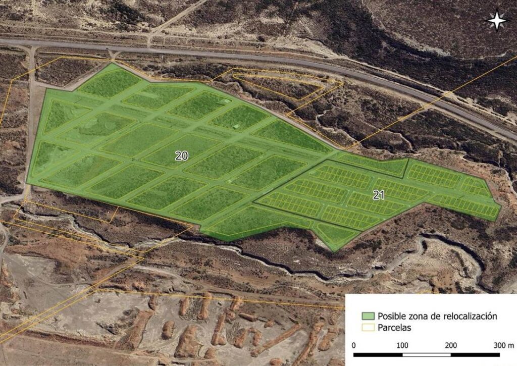 | 19 | 2631676 | Con parcelamiento trazado | 347.005 | ZAU (Zona Ampliación Urbana) | Gran extensión. Conectado con Ruta Provincial 39. | Cercanía con (potencial) ex zona petrolífera. Lejanía respecto a la zona afectada original. Considerable desnivel. |